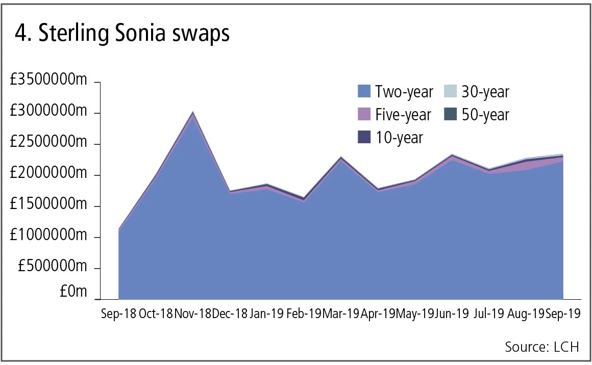 As 2019 ends and we move into 2020, we expect to see much higher volumes in SOFR futures and SOFR swaps, with the upcoming Q3 move by clearing houses from Fed funds to SOFR discounting. While Sonia has no such trigger, as sterling swaps are already discounted with Sonia, continued exhortations from regulators should result in data showing higher Sonia and lower Libor volumes.