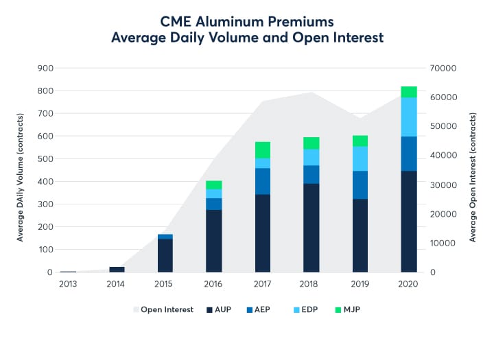 CME Group Regional Aluminum Premium contracts continue to gain relevancy as evidenced by continued increases in volume and open interest.