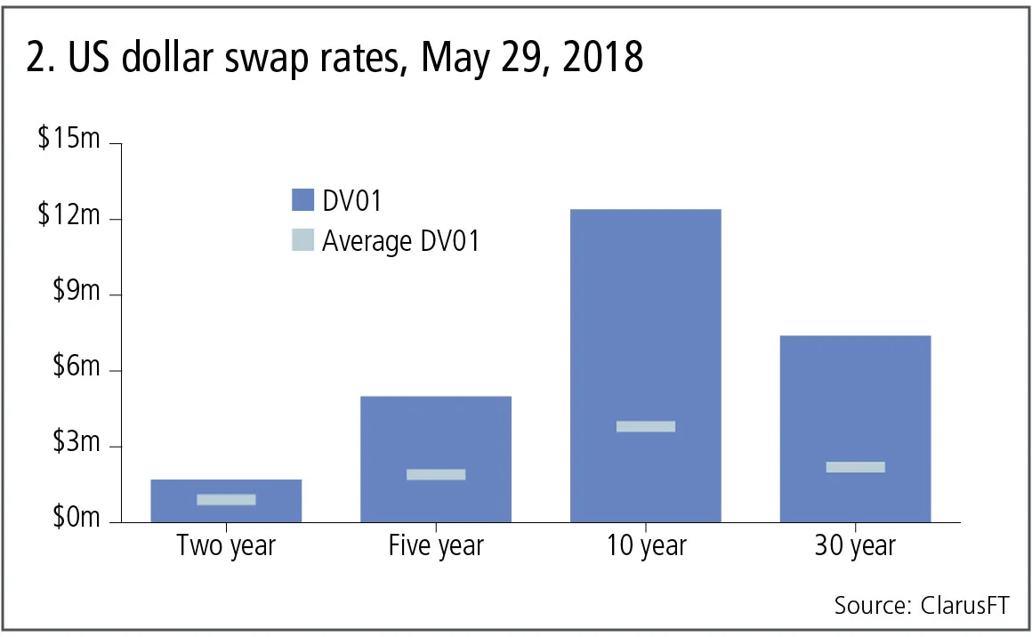 The difficulties facing Italy’s new populist coalition dominated the news – and the markets – at the end of May, prompting investors to move money out of euros and into US dollars and US Treasuries. The resulting severe drop in US Treasury yields and swap rates presents an interesting opportunity to look at price and volume data in the dollar swap market.