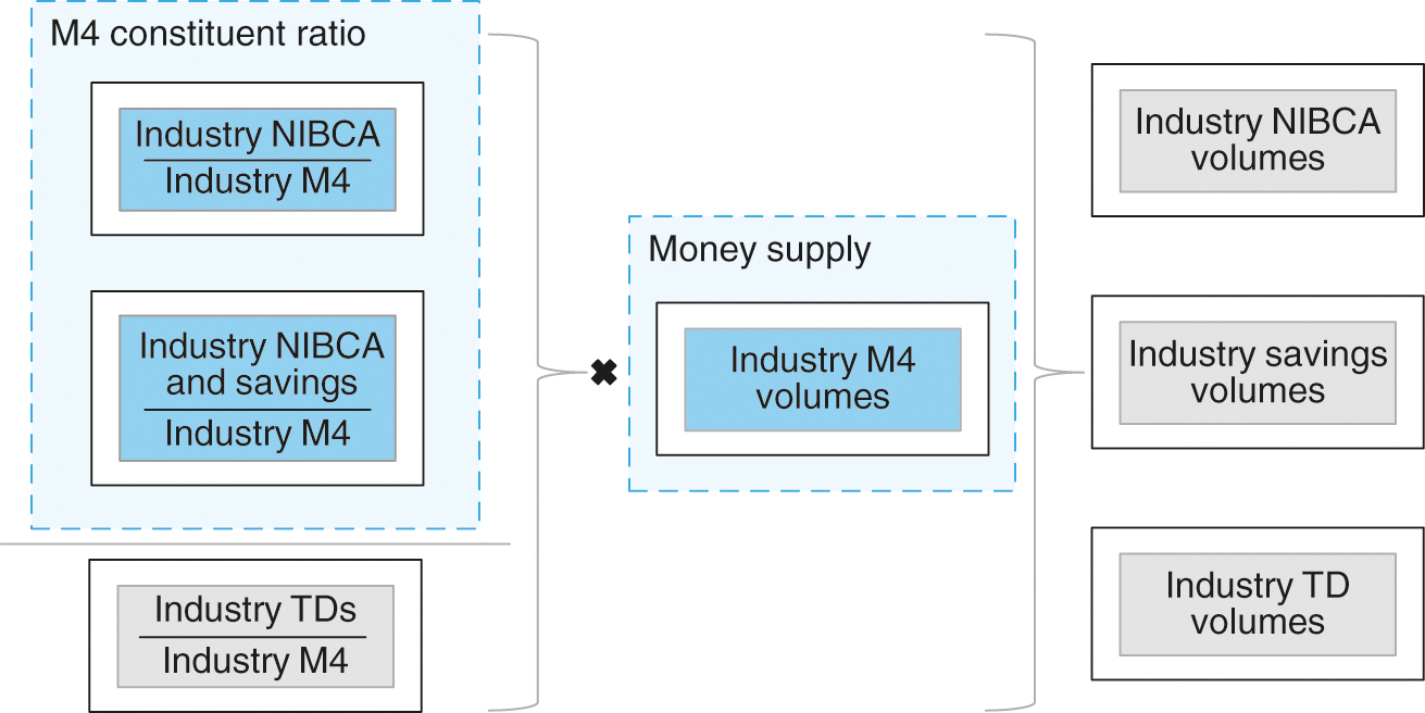 - A concrete model calibrated on UK industry corporate sight and time deposit balance series published by the Bank of England is presented together with forecasts obtained under different interest rate scenarios.