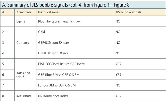 Interpreting the JLS bubble signal is crucial. The theory behind the JLS model states that if investors in some asset expect a future event – for example, the UK referendum – that could have a negative impact on that asset, for example Brexit, then this may trigger a dynamic leading to a bubble regime, possibly followed by a crash. Reversing the argument, if one detects bubble signals for an asset and knows how a future event will affect the asset price, then one can infer the investors expect a negative scenario for that asset.